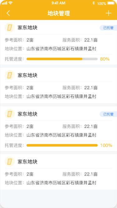 線上圈畫地塊,提高畫地效率;列表化顯示管轄所有地塊信息,便于農戶對托管服務的監管;